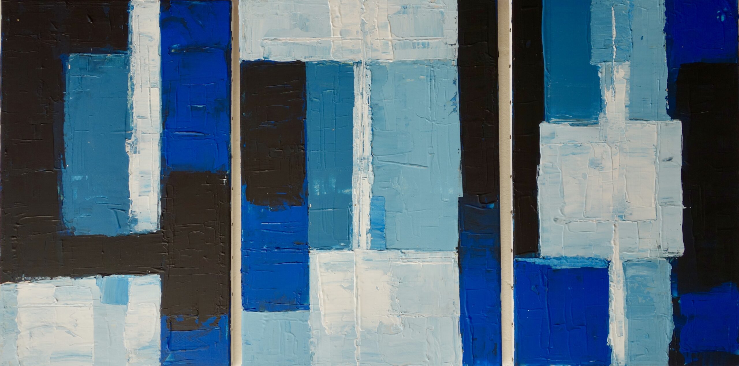 Sans titre, acrylique sur toile, triptyque, 100 x 150 x 4 cm, 2023 n° 22. Vendu.
